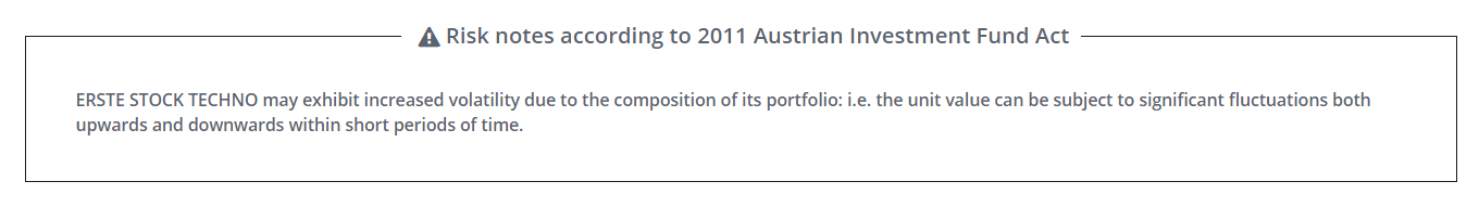 Note: You are about to purchase a product that may be difficult to understand. We recommend that you read the indicated fund documents before making an investment decision. In addition to the locations listed above, you can obtain these documents free of charge at the offices of the referring Sparkassen bank and the offices of Erste Bank der oesterreichischen Sparkassen AG. You can also access these documents electronically at www.erste-am.com.
