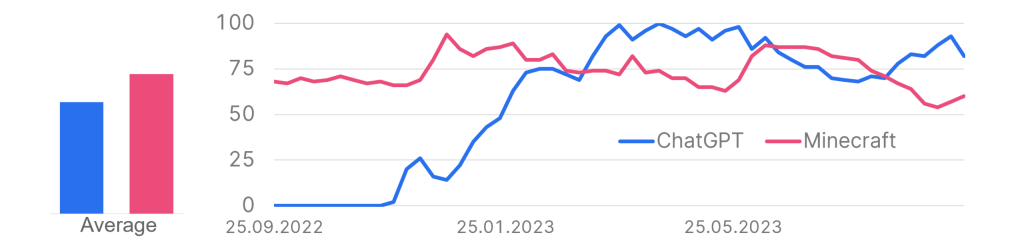 Google search statistics for the terms„ChatGPT“ and „Minecraft“