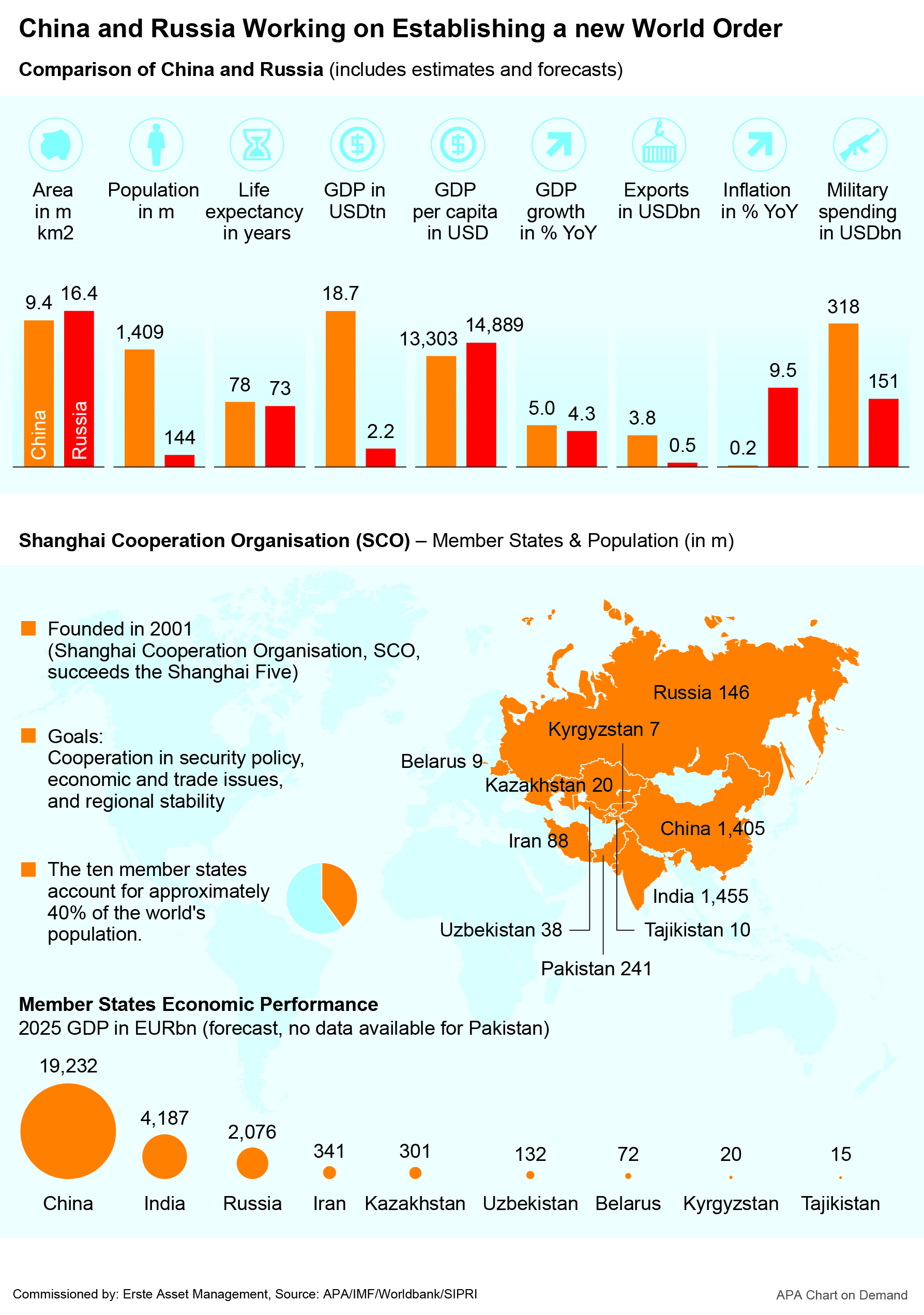 The trade conflict with the United States is probably also a reason why China is increasingly moving closer to other partners such as Russia and India in terms of foreign and economic policy. At the most recent summit of the Shanghai Cooperation Organization (SCO), China’s President Xi Jinping and Russia’s head of state Vladimir Putin pushed ahead with their vision of a new global security and economic order. The SCO is a security policy bloc that includes Russia and China as well as other countries such as India, Iran and Kazakhstan.