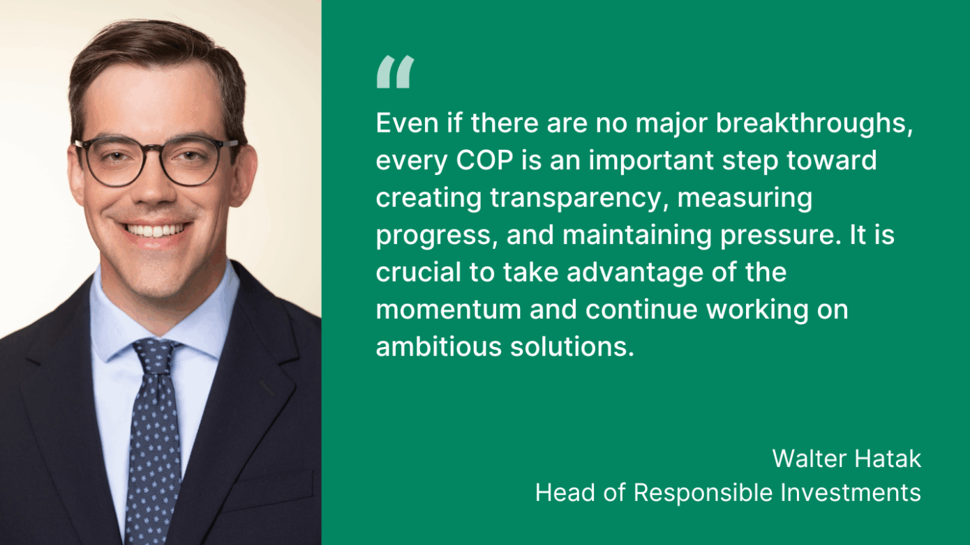 Hatak, an expert in responsible investment, is certain that global cooperation and dialogue in the form of the World Climate Conference are still needed: “Even if there are no major breakthroughs, every COP is an important step toward creating transparency, measuring progress, and maintaining pressure. It is crucial to take advantage of the momentum and continue working on ambitious solutions.”