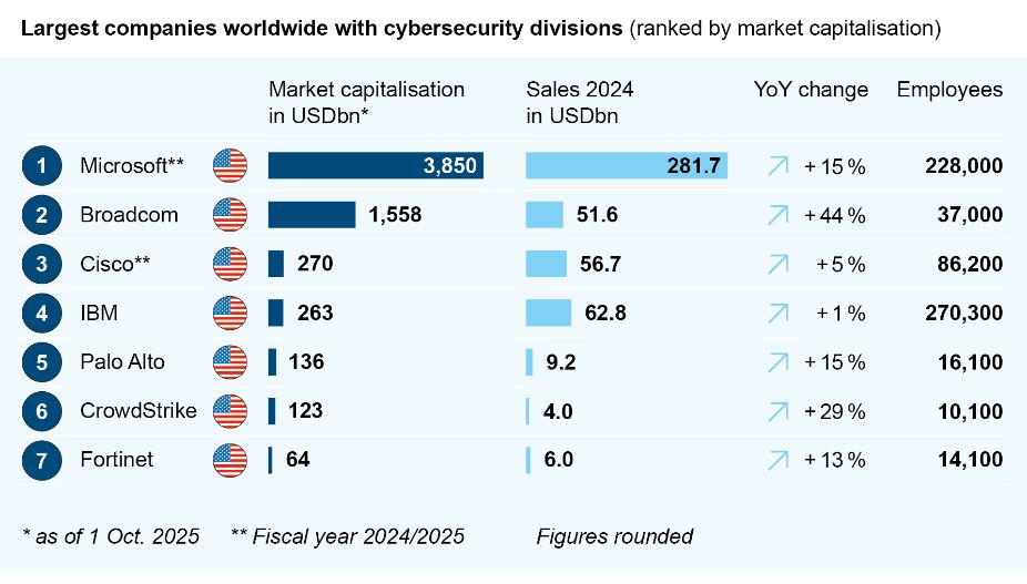 This need for upgrades is also likely to continue to benefit providers of cybersecurity solutions. The market is currently shared by specialized IT security providers such as firewall specialist Palo Alto Networks and well-known tech giants with large cybersecurity divisions. IBM and Microsoft, for example, are major providers of security solutions. Network specialist Cisco generates 20 percent of its revenue from cybersecurity.