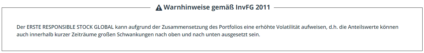 The prospectus for UCITS funds (including any amendments) is prepared and published in accordance with the provisions of the InvFG 2011 as amended. Information for Investors pursuant to § 21 AIFMG is prepared for the alternative investment funds (AIF) administered by Erste Asset Management GmbH pursuant to the provisions of the AIFMG in conjunction with the InvFG 2011.