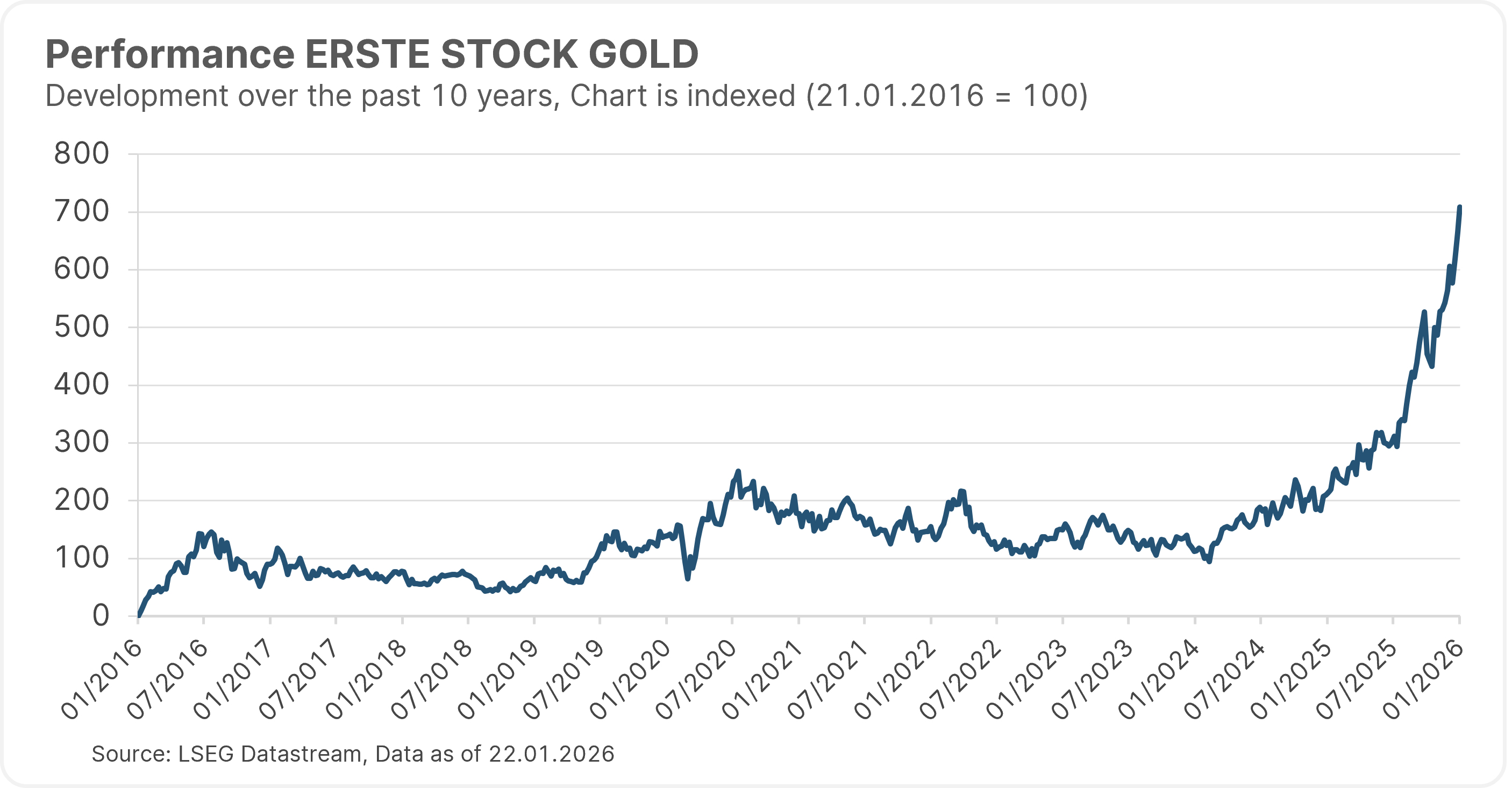 A look at the fund’s performance over the past ten years shows that this strategy has yielded positive results in the long term, especially given the positive development of the gold price in the recent past. Note: Please note that investing in securities involves risks as well as opportunities. Past performance is not a reliable indicator of future performance.