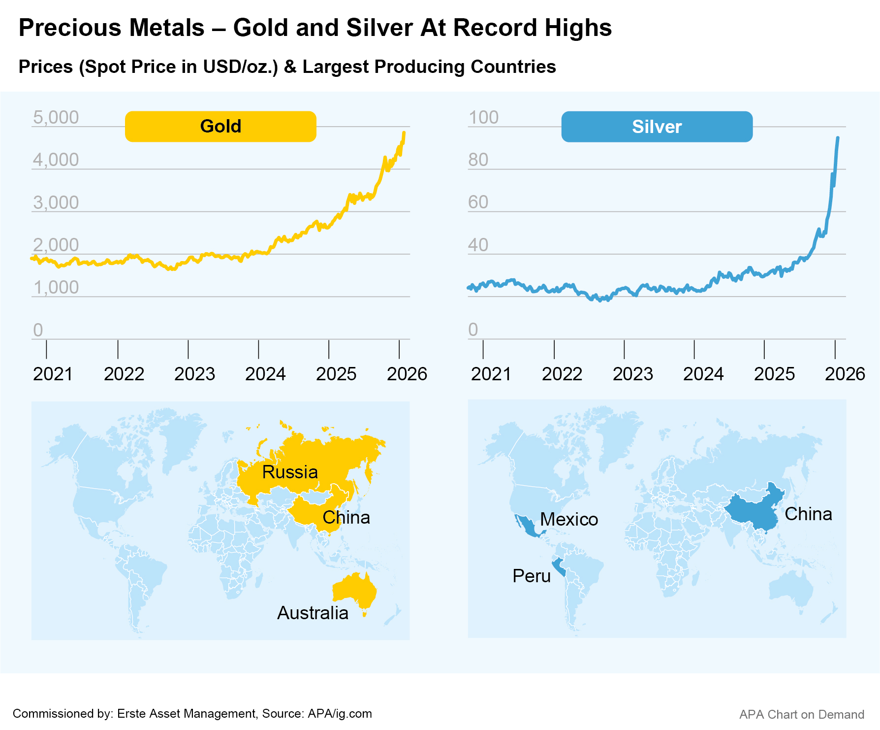 The ERSTE STOCK GOLD equity fund offers the opportunity to invest in the entire gold mining supply chain with flexible capital allocation. Global gold production in 2024 was approximately 3,300 tons, dominated by countries such as China, Russia, Australia, and Canada. The equity fund focuses on the different areas of companies involved in gold production: