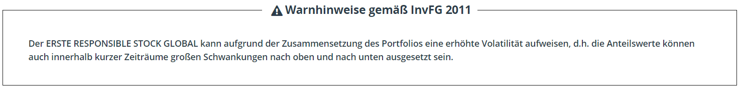 The prospectus for UCITS funds (including any amendments) is prepared and published in accordance with the provisions of the InvFG 2011 as amended. Information for Investors pursuant to § 21 AIFMG is prepared for the alternative investment funds (AIF) administered by Erste Asset Management GmbH pursuant to the provisions of the AIFMG in conjunction with the InvFG 2011.