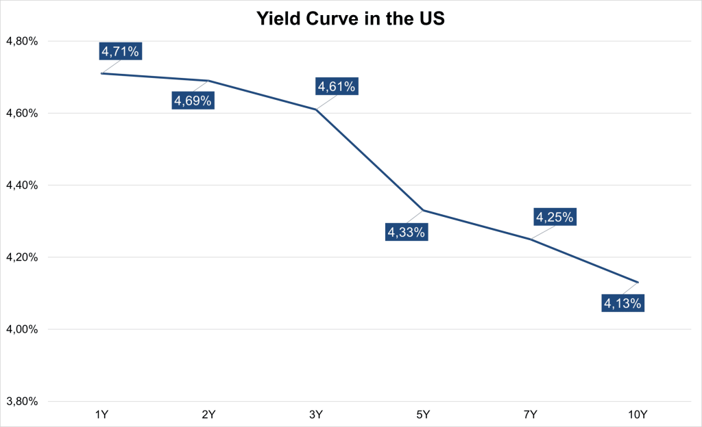 In the USA, the two-year yield on government bonds has now been above the ten-year yield since July (currently: 0.5 percentage points). Statistically, this provides a strong indication of an impending recession. This environment of an inverted yield curve is likely to persist. This is because the Fed is signaling that it will keep key interest rates at a restrictive level for some time, even if this means pain.