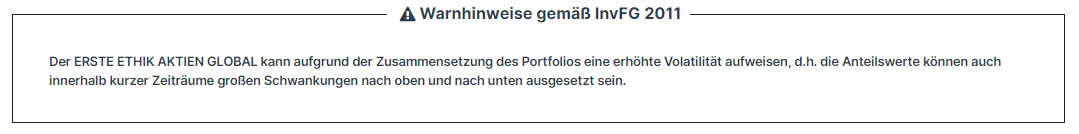 The prospectus for UCITS funds (including any amendments) is prepared and published in accordance with the provisions of the InvFG 2011 as amended. Information for Investors pursuant to § 21 AIFMG is prepared for the alternative investment funds (AIF) administered by Erste Asset Management GmbH pursuant to the provisions of the AIFMG in conjunction with the InvFG 2011.