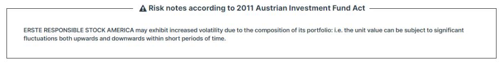 For further information on the sustainable focus of ERSTE RESPONSIBLE STOCK AMERICA as well as on the disclosures in accordance with the Disclosure Regulation (Regulation (EU) 2019/2088) and the Taxonomy Regulation (Regulation (EU) 2020/852), please refer to the current Prospectus, section 12 and the Annex “Sustainability Principles”. In deciding to invest in ERSTE RESPONSIBLE STOCK AMERICA, consideration should be given to any characteristics or objectives of the ERSTE RESPONSIBLE STOCK AMERICA as described in the Fund Documents.