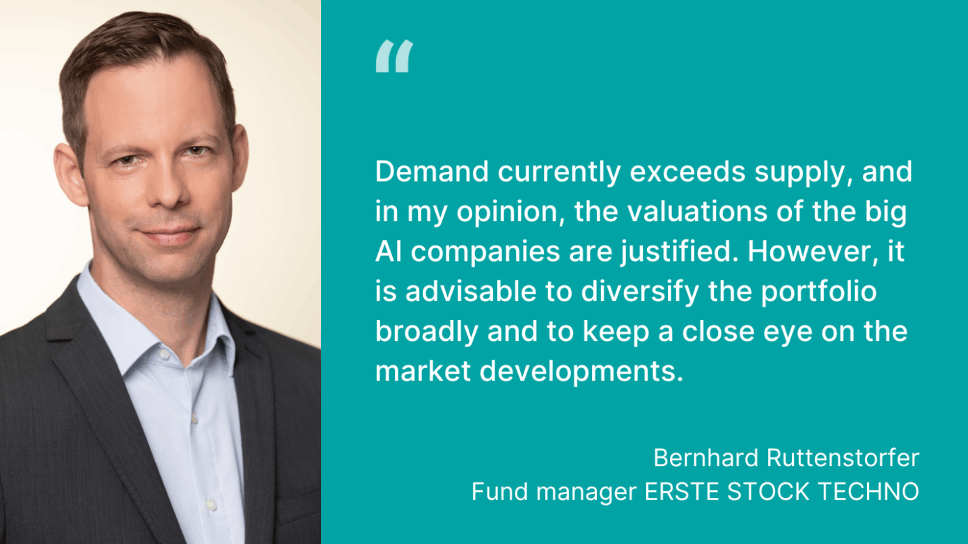 Investors worldwide are concerning themselves with the question of whether current developments in artificial intelligence (AI) are creating a bubble on the equity markets, or whether they are actually heralding a new era of value creation. Billions are flowing into infrastructure, chips, and data centres – but what is really behind the boom? Bernhard Ruttenstorfer, fund manager of ERSTE STOCK TECHNO, assesses the situation.